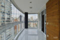 A varanda é ampla e ensolarada, já fechada por vidros.
