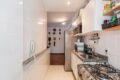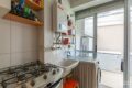 A cozinha é iluminada e ventilada naturalmente. As marcenarias brancas, por sua vez, trazem leveza e permitem diversas possibilidades de personalização.