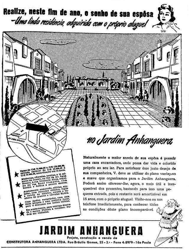 Com o sucesso destas primeiras casas, em 1946, Artacho Jurado resolve criar uma vila de casas na Rua Venâncio Aires (na travessa Gondoleiro do Amor). No fundo destes lotes seguem outras que dão a frente para a rua Raul Pompeia. Em homenagem à prospera construtora ele nomeia de Vila Anhanguera.