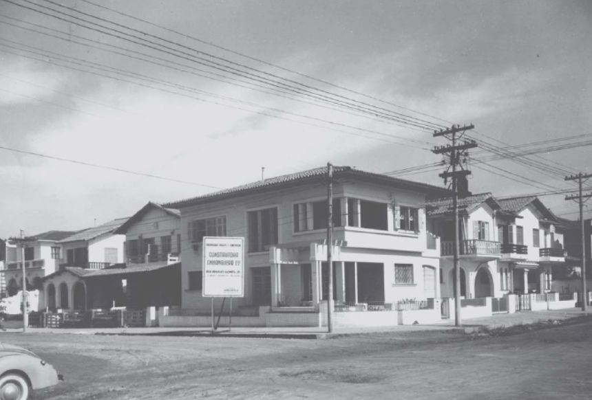 Suas primeiras construções foram uma série de sobrados geminados construídos em um lote em formato L na esquina das ruas Crasso e Coriolano. Por mais que fossem uma série de casas, eles aproveitaram para colocar em prática ali diferentes soluções e disposições de plantas. Quase como se fosse um teste, aproveitaram a ocasião e a grande oferta de mão de obra para estudar possibilidades e entender o que seria mais atrativo para os clientes.