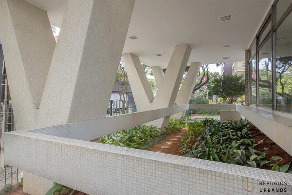 O bloco A impressiona com seus pilares em formato de V, marca da arquitetura moderna do período. O prédio preserva uma série de elementos originais que contam a história do tempo em que foi construído: o piso do hall e as escadas em granilite; e o revestimento fulget nas paredes do térreo.