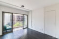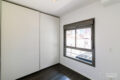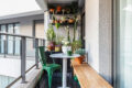 Chegando ao dormitório, temos uma parede inteira com armário do piso ao teto e portas de correr, otimizando o espaço. A janela blackout é ampla, com vista para a varanda: um lugar perfeito para suas plantas!