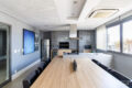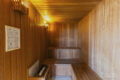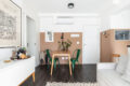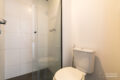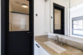 O banheiro funciona tanto como lavabo quanto como “suíte”, dependendo das aberturas das portas. O projeto prioriza a privacidade ao receber convidados.