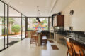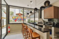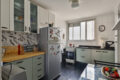 Uma porta de correr isola a cozinha do espaço social, assim, a ventilação cruzada é garantida. Alías, a cozinha tem um ótimo tamanho, é clara e ventilada.