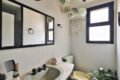 Em seguida, um banheiro social serve os outros dois quartos. Aliás, os dois banheiros tem ventilação natural.