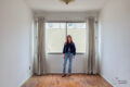 Uma grata surpresa, é esse piso original de taco de madeira, bem como as janelas, que são grandes e vão de ponta a ponta da parede. Além disso, temos o pé direito alto.