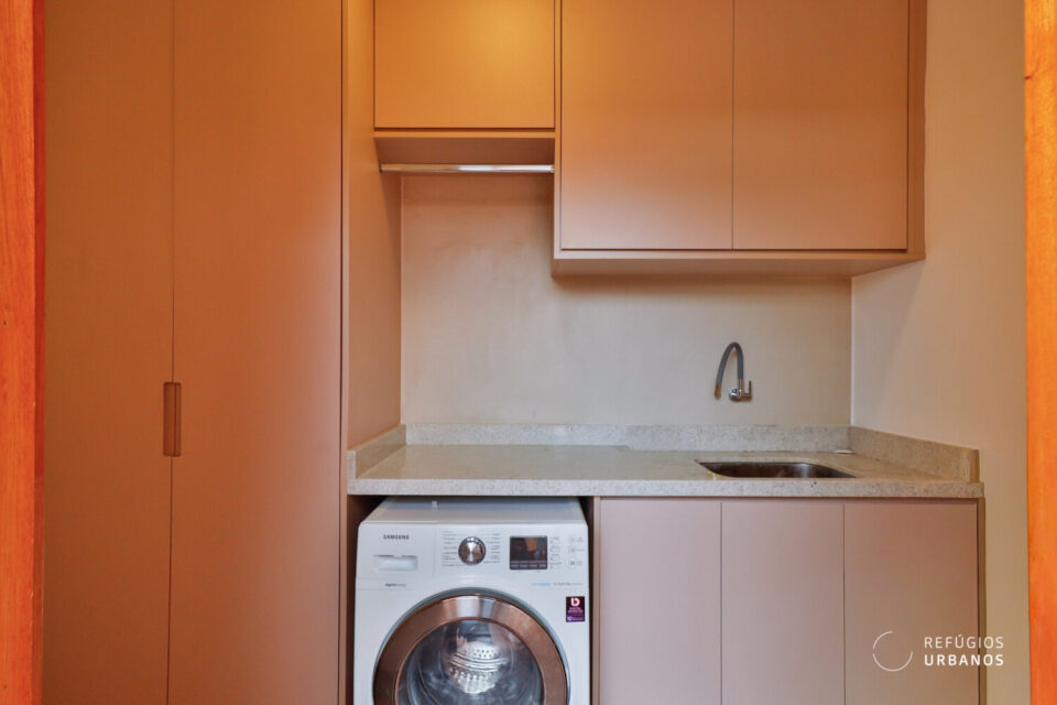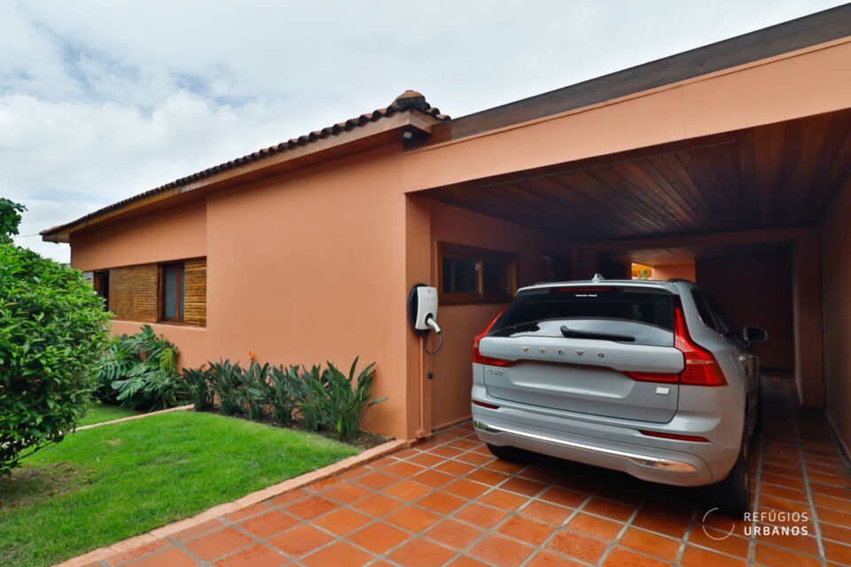Para finalizar, a lavanderia fica separada da casa principal e conta com boa marcenaria, garantindo praticidade no dia a dia. Já a garagem oferece vagas para até três carros e dispõe de tomada para carregamento de veículo elétrico, reforçando o perfil atual, funcional e sustentável do imóvel.