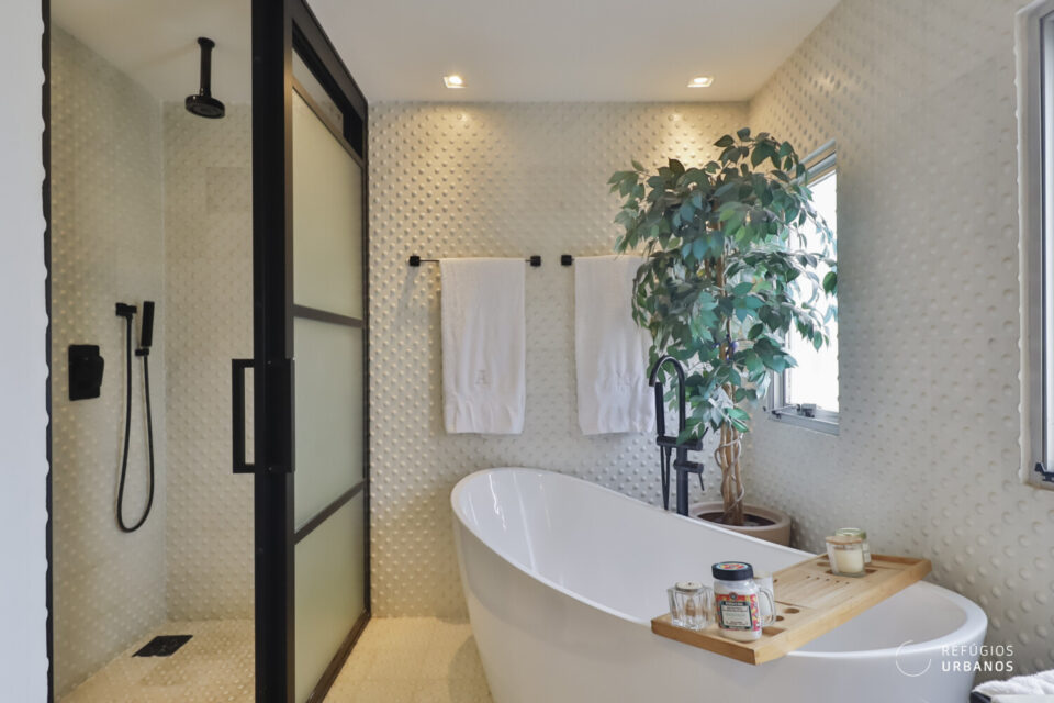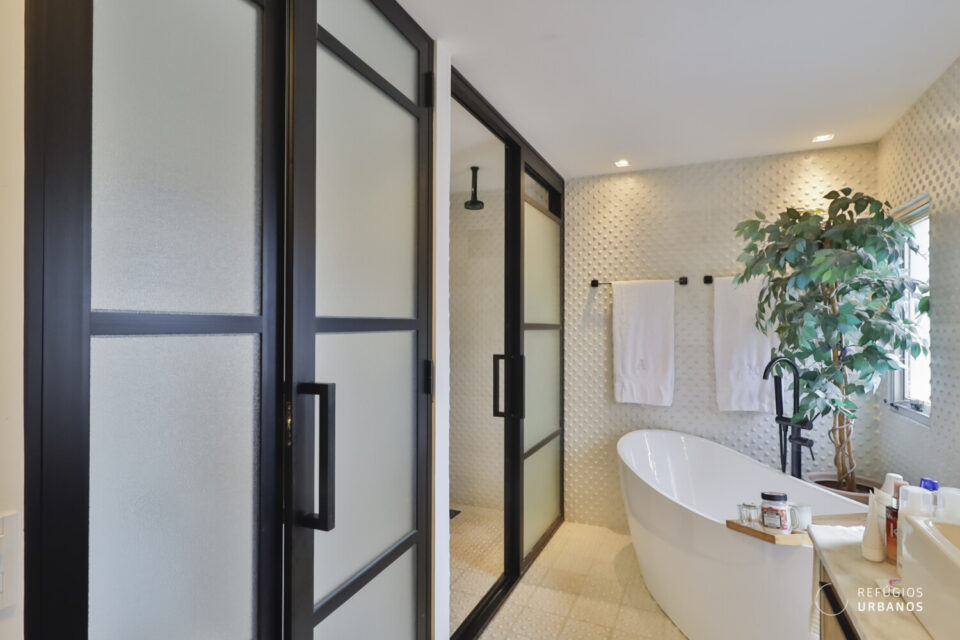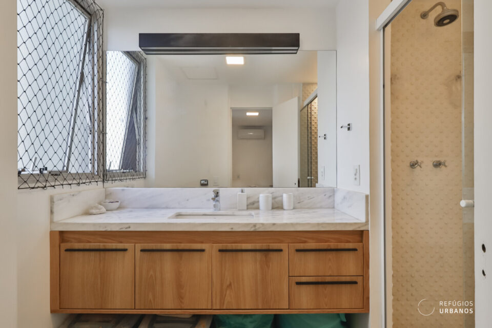 O banheiro dessa suíte merece destaque: digno de capa de revista!