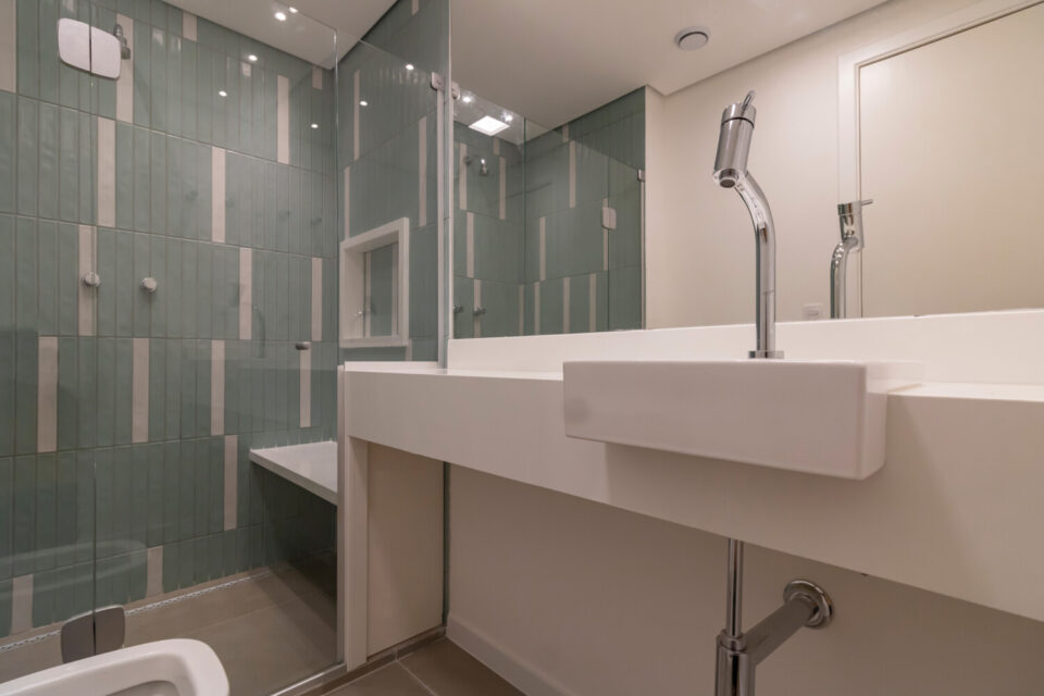 A planta original foi adaptada para criar um lavabo e uma suíte confortável, que pode ser expandida ao incorporar um dos quartos vizinhos. Com três dormitórios no total, o imóvel atende não só famílias mas também casais que buscam espaço extra.