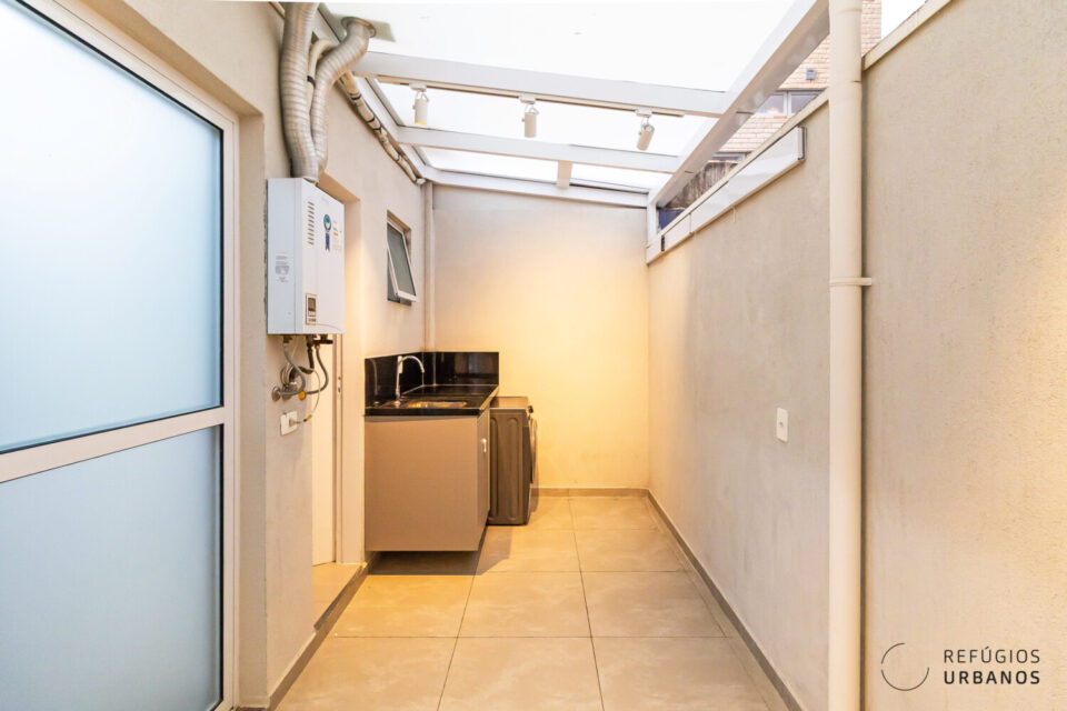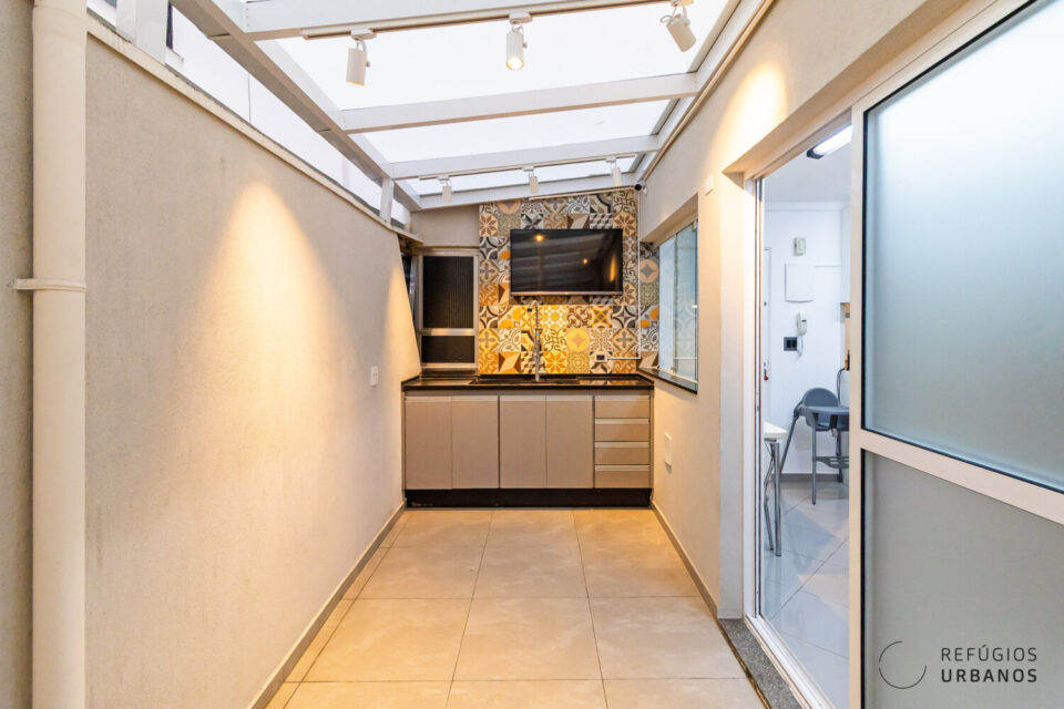 E aí vem o diferencial: além disso, a área externa coberta com telhado de vidro e iluminação em trilho — um espaço gourmet de verdade, com espaço para receber os amigos, fazer um churrasco e até assistir à Copa do Mundo no meio do ano :)