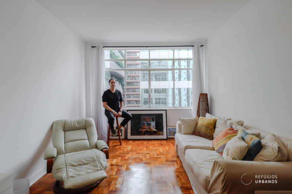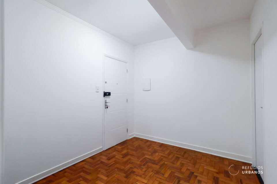 Apartamento de 70,98 m2 de área útil na Rua Augusta no Jardins, com 1 dormitório, 1 banheiro, ampla sala e muita luz, sem vaga de garagem, em prédio charmoso de 8 andares.
