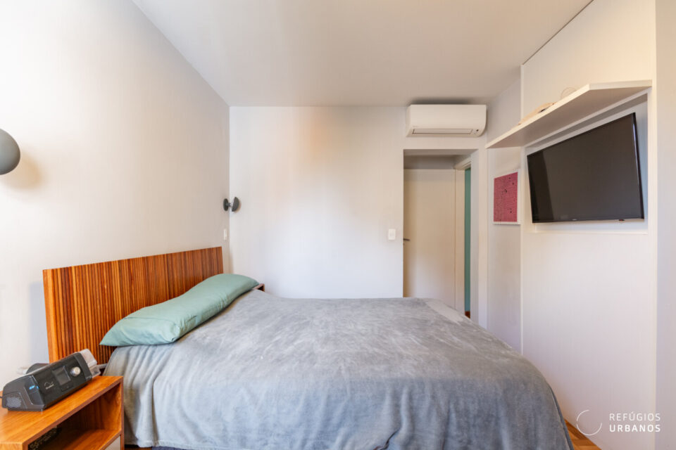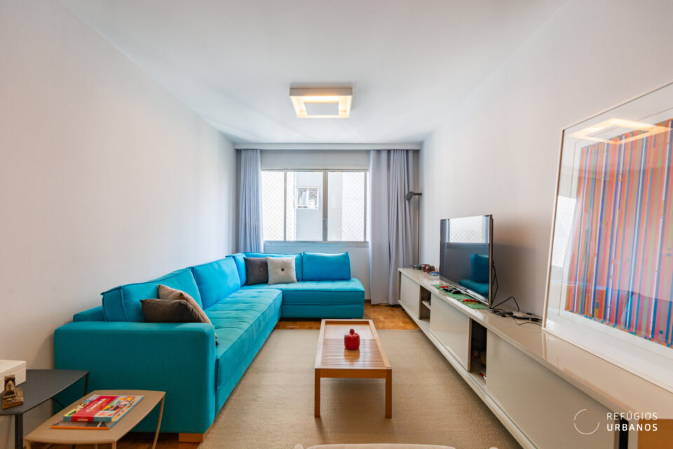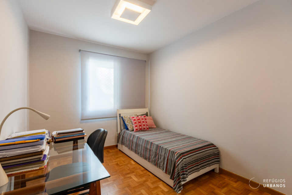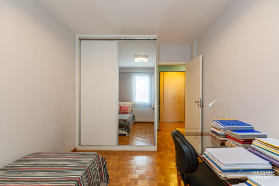 Já viveu a família inteira. O corredor virou escritório, os filhos cresceram aqui. E hoje, com o ninho vazio, um dos quartos virou escritório. O outro, por sua vez, virou base para quem está de passagem na cidade.