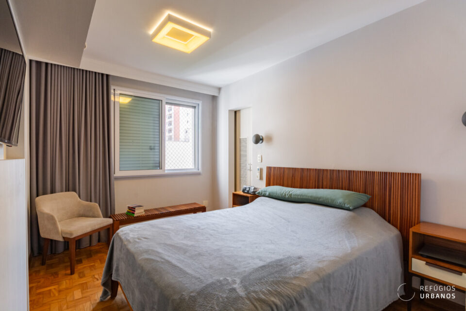 Seguindo pelo corredor, os quartos são amplos, com bastante espaço e armários em todos eles. Em qualquer um deles cabe cama Queen ou até King. Além disso, a suíte master conta com closet e janelas antirruído, em outras palavras, silêncio garantido.