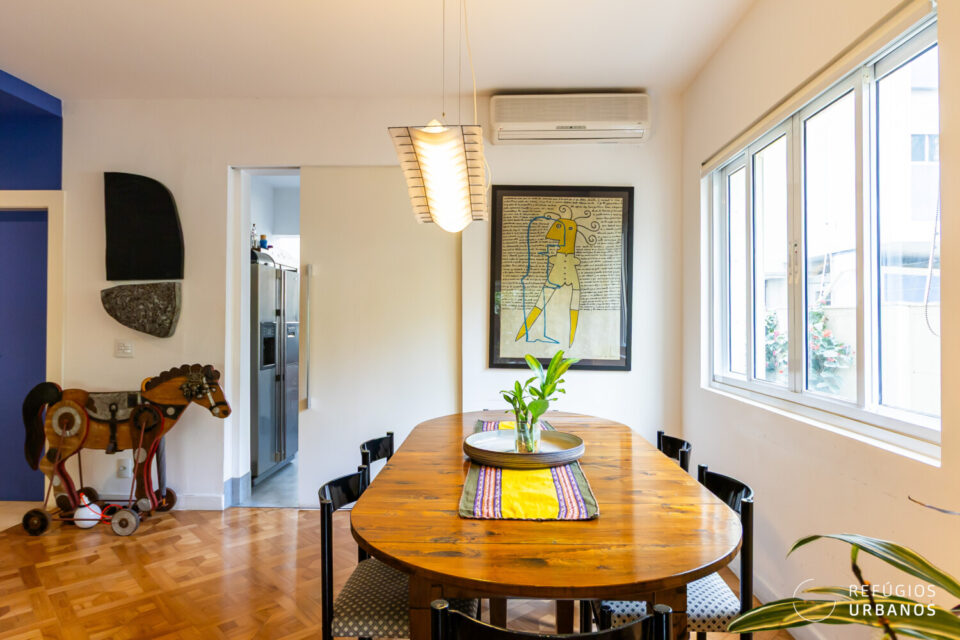 Em termos de localização, o apartamento fica em um trecho tranquilo e arborizado da rua Maranhão, em Higienópolis.