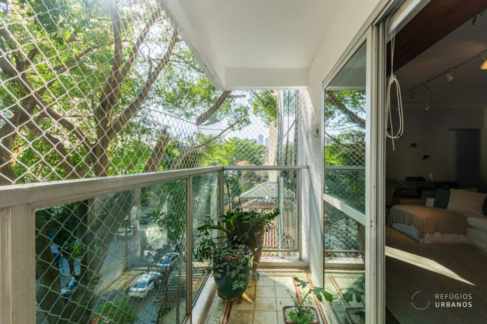 Logo ao entrar, a varanda arborizada convida a respirar fundo. Além disso, duas janelas deixam o sol da tarde iluminar toda a sala.