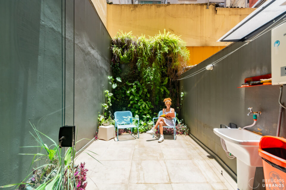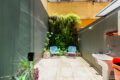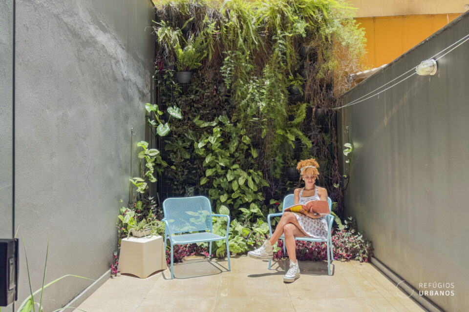Logo na chegada, o destaque é o garden com jardim vertical autoirrigável e ótima incidência de sol ao longo do dia. Assim, esse espaço funciona como uma extensão natural da área social, ideal para diferentes usos.