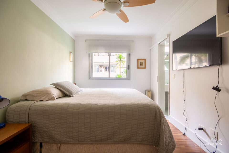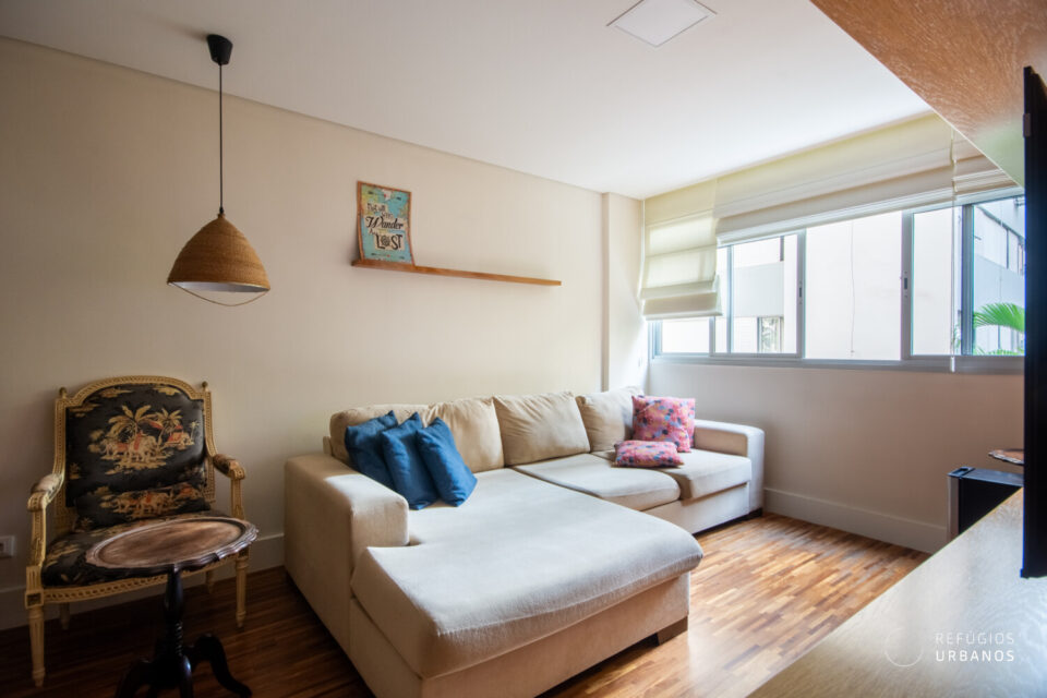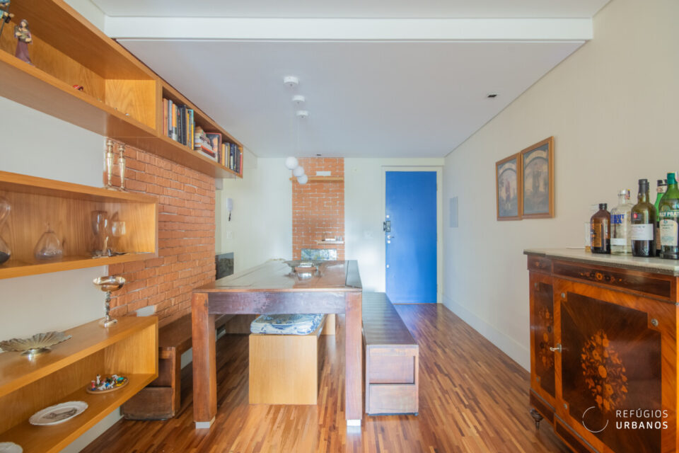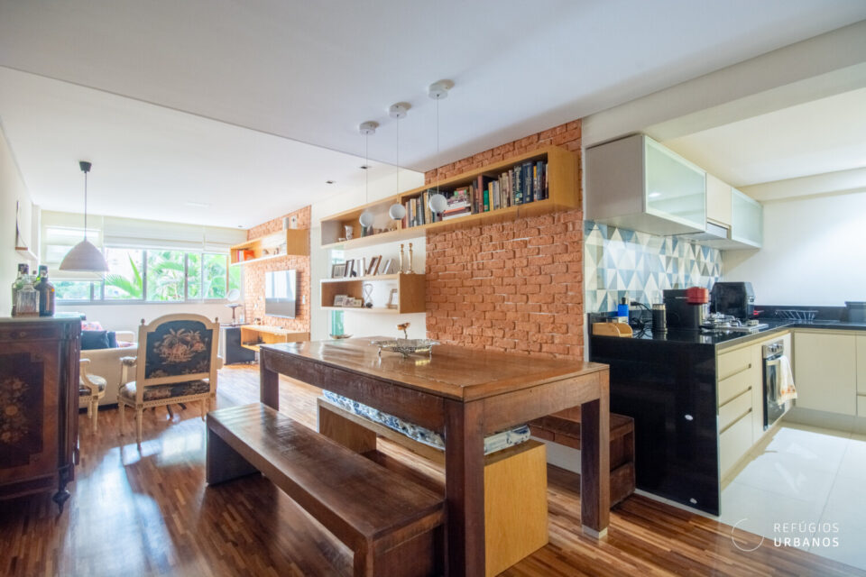 Apartamento com 84,57 m², reformado; ambientes integrados, 2 dormitórios (1 suíte), vista para a copa das árvores, em uma rua tranquila na parte plana do Jardim Paulista