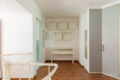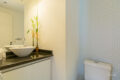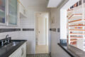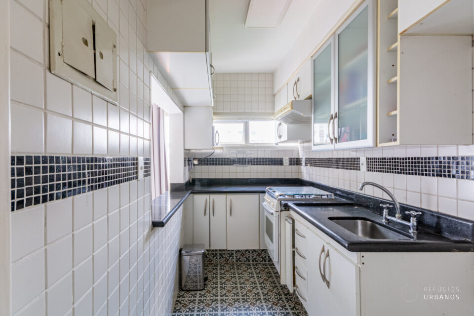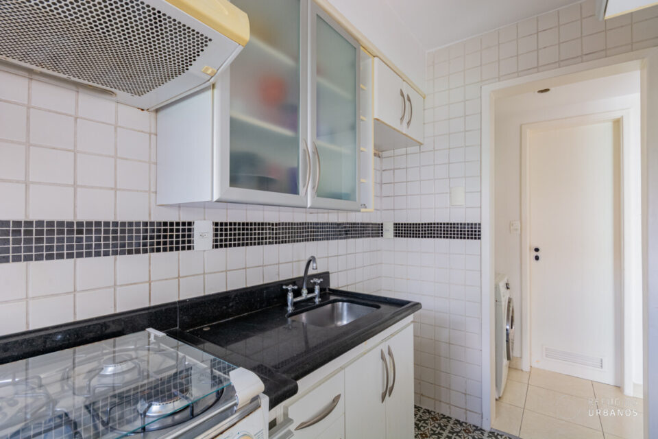 A cozinha possui marcenaria planejada, e conecta-se perfeitamente aos demais ambientes através de uma janela. Tem ainda um lavabo e a área de serviço.