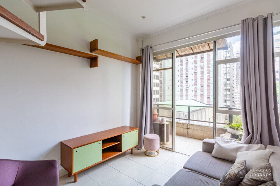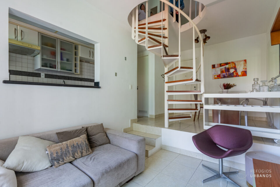 Apartamento duplex de 53,48 m² de área útil no Jardins, com 1 suíte e 1 vaga, em prédio com lazer completo, perto da Avenida Paulista e do metrô.
