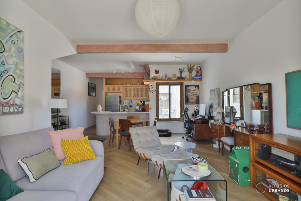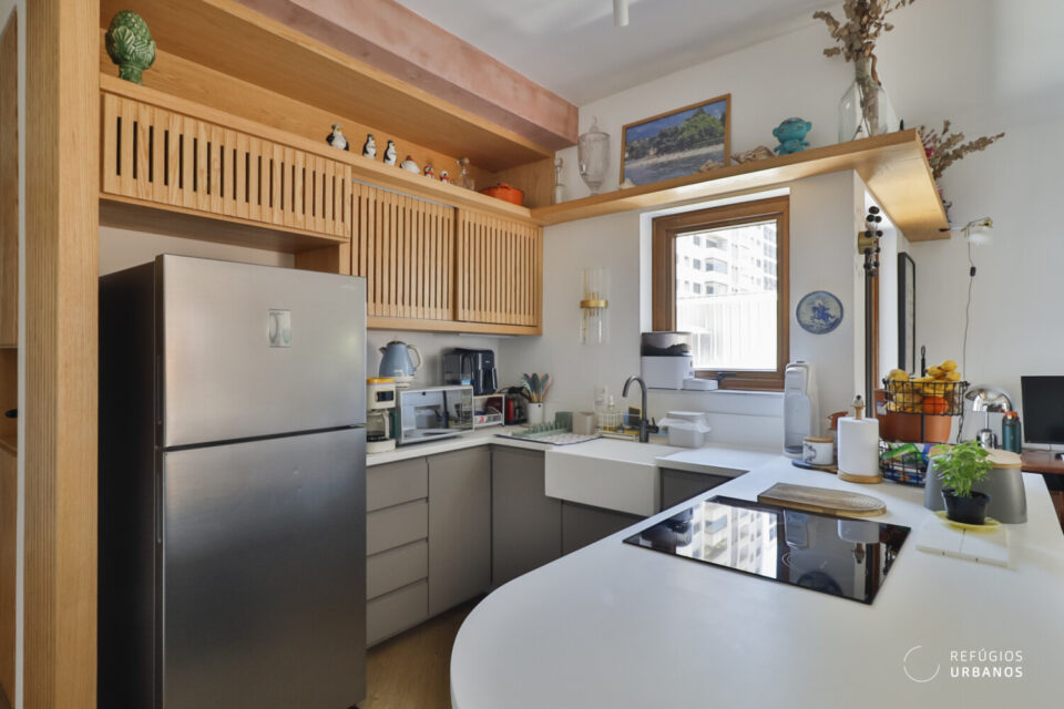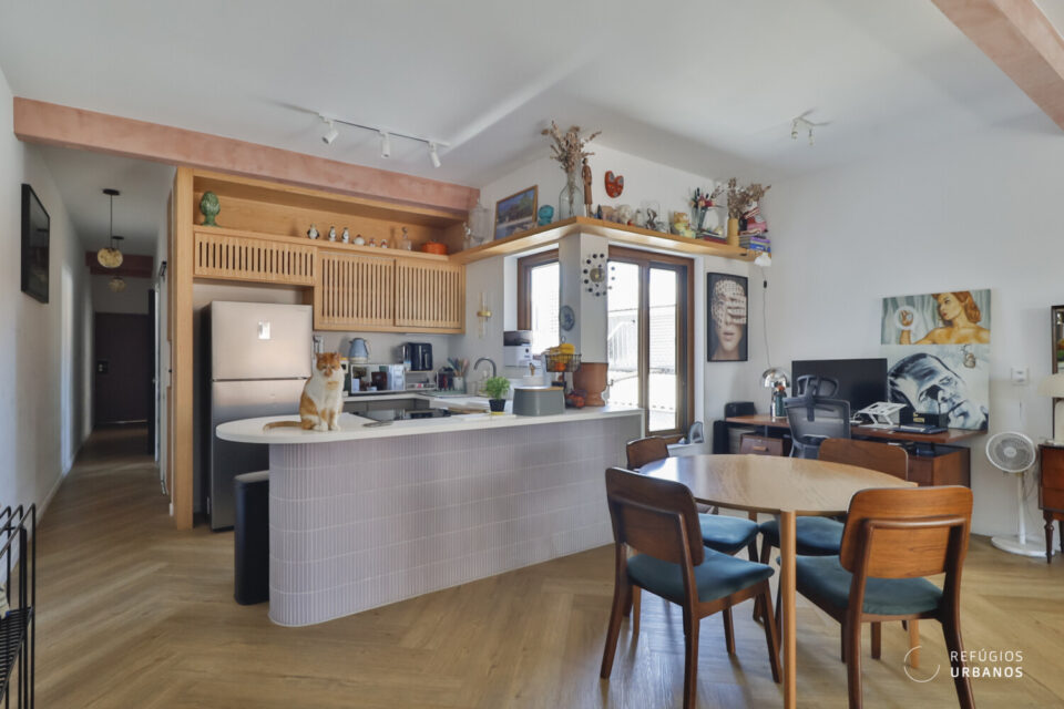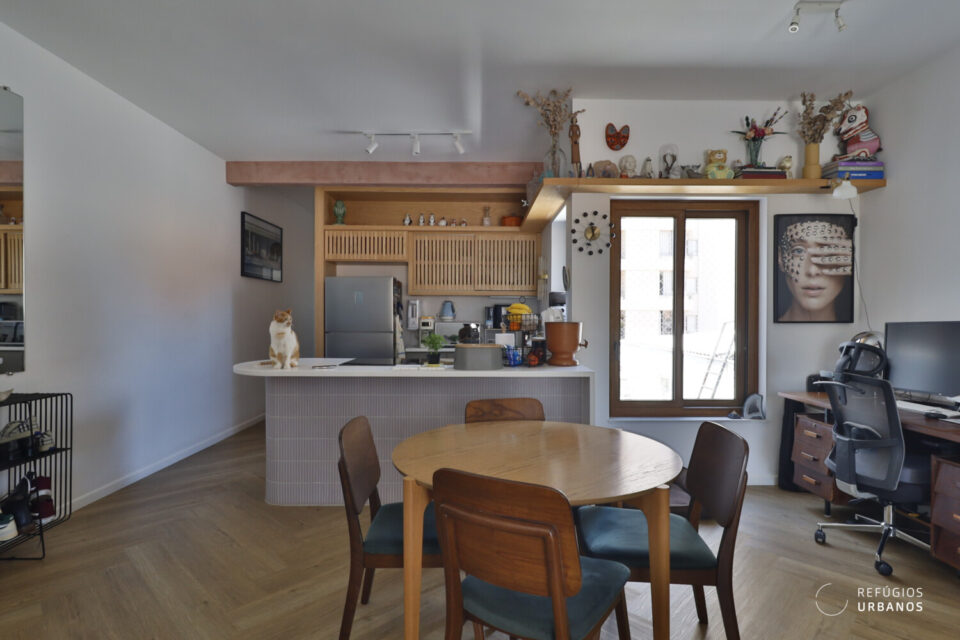 Está pronto pra ser feliz nesse refúgio? Ao entrarmos no apartamento somos surpreendidos pelo bom gosto da reforma, que aliás, foi completa. Desde elétricula, hidráulica, revestimentos, até uma reconfiguração no layout.