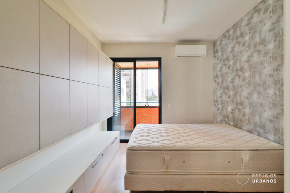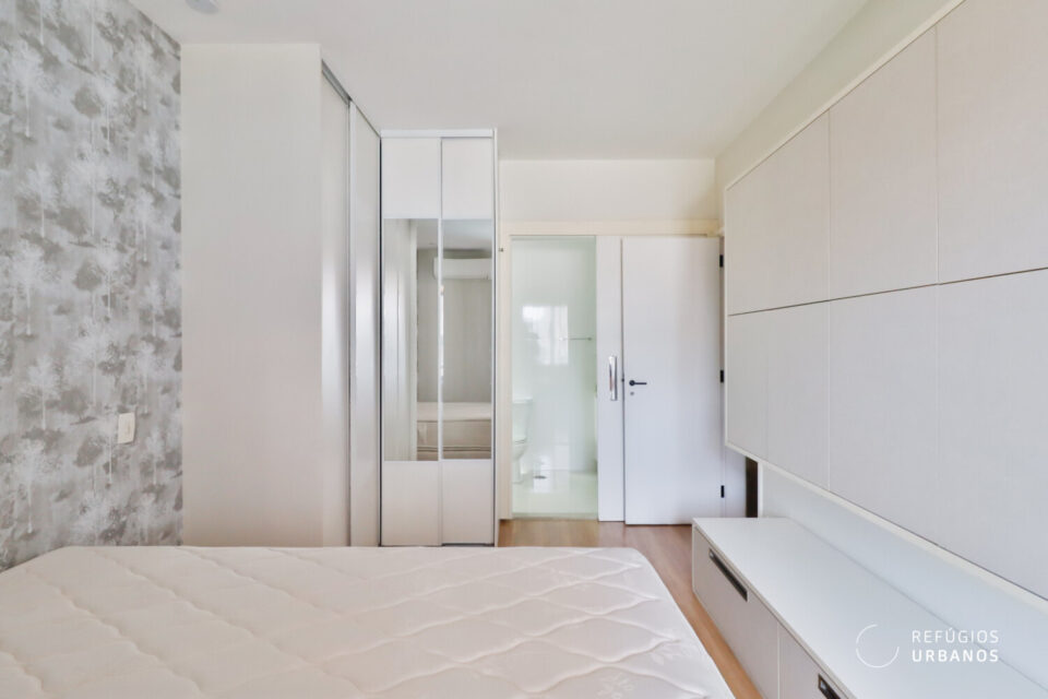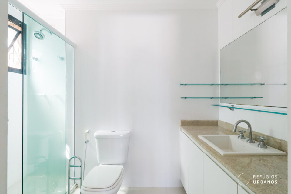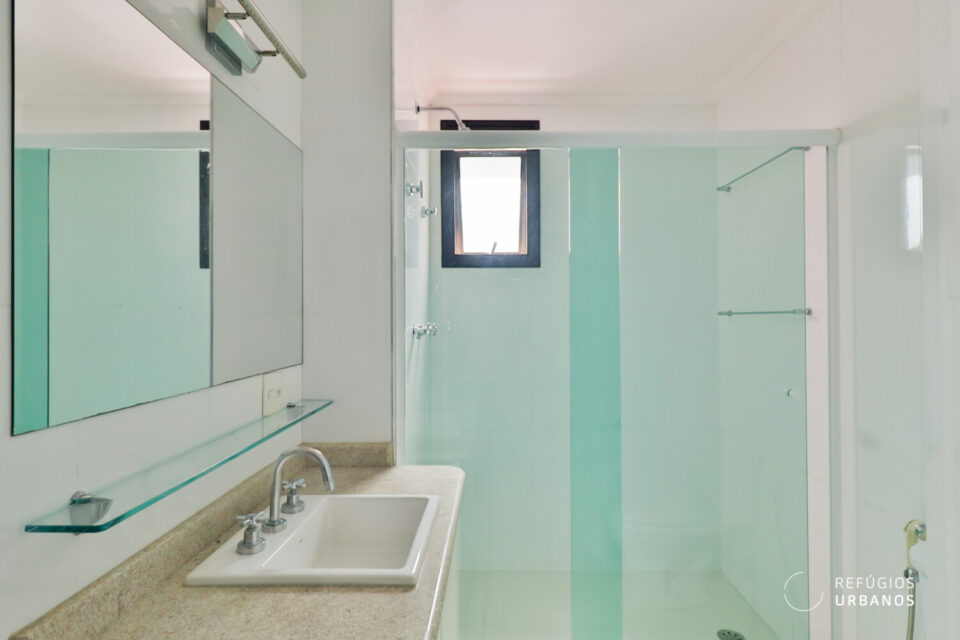Em seguida, a suíte fecha o apartamento com chave de ouro. Tem closet no corredor de entrada e uma varandinha privativa de tijolinhos que ganha o pôr do sol de presente e o banheiro com vetilação natural.