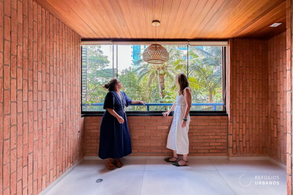 A varanda merece destaque: tijolinhos à mostra, vista para o jardim do condomínio. Ou seja, é difícil querer sair dali!