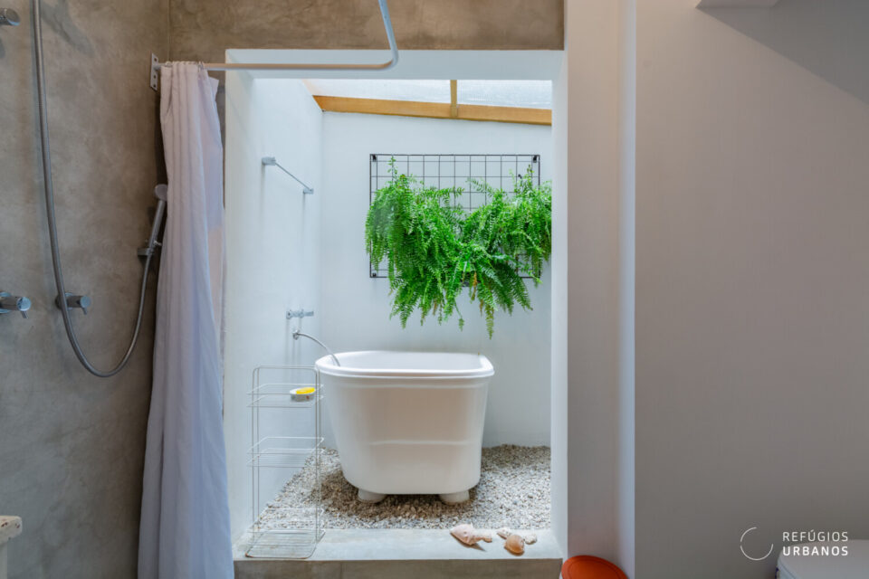Por fim, finalizando, um banheiro para lá de confortável, com ventilação natural e uma deliciosa banheira que proporciona momentos únicos na hora do banho!