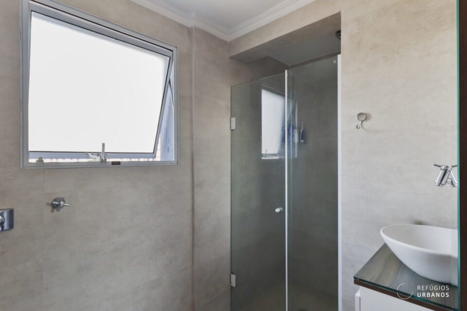 Ao seguir para a área íntima, você encontra um quarto iluminado e arejado, com espaço ideal para descanso e organização. Em frente, o banheiro reformado, com acabamentos atuais, iluminação natural e ventilação — tudo pronto para o seu dia a dia!