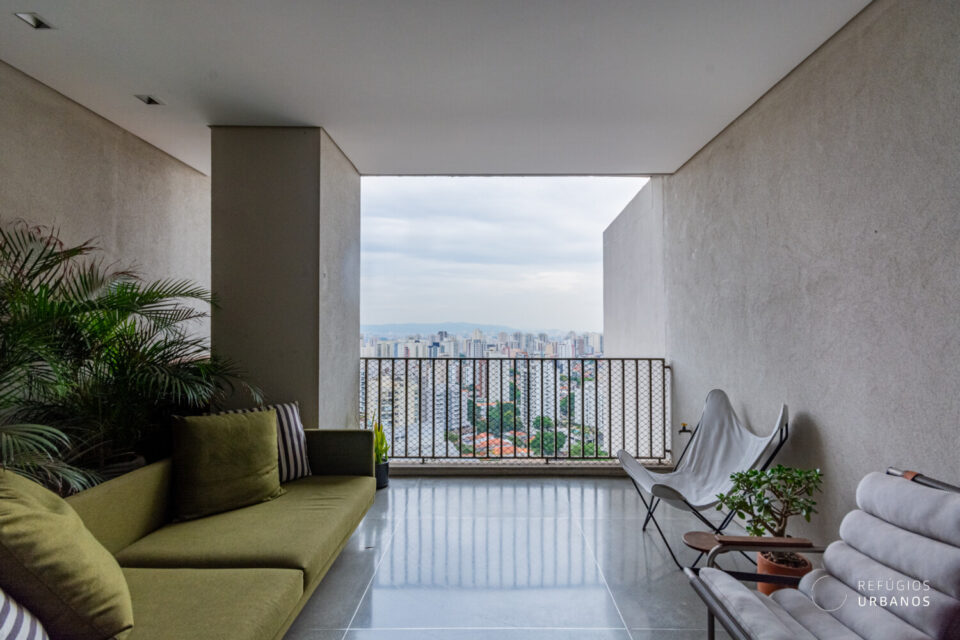 A varanda generosa, totalmente aberta para a vista livre, é o verdadeiro coração do apartamento — ensolarada pela manhã e perfeita para cafés tranquilos, plantas, leitura ou encontros com amigos.