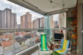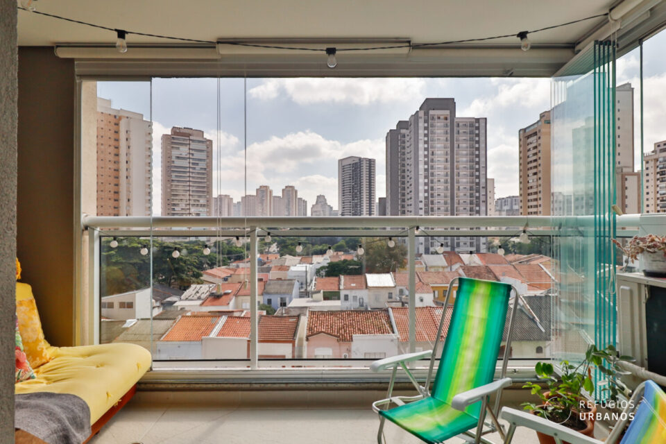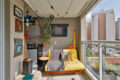 A varanda é aconchegante e voltada para o sol da manhã. A incidência de luz pode ser controlada por persianas e o fechamento em vidro oferece proteção de vento e chuva, para que mesmo com mau tempo, esse espaço possa ser bem aproveitado.