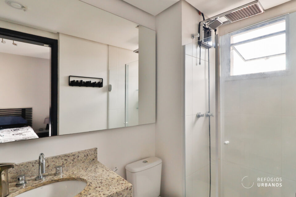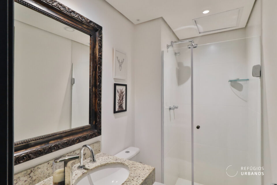 E tem um segundo banheiro completo, que atende bem as visitas.