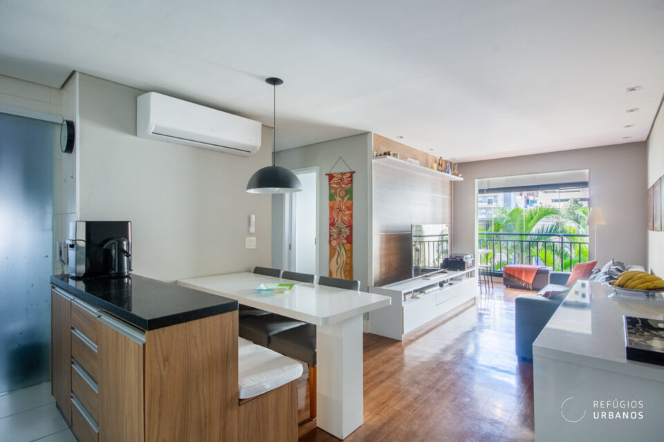 Ambientes integrados, marcenaria planejada e vista para o verde garantem conforto e bem-estar em todos os momentos.