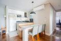 Logo na entrada, a integração entre sala, jantar e cozinha cria um ambiente fluido e acolhedor.