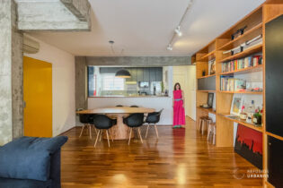 Logo ao entrar, a amplitude dos espaços e a integração dos ambientes revelam a sensação de morar em uma casa e, por isso, o apartamento transmite a praticidade e o charme de um edifício de época.
