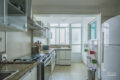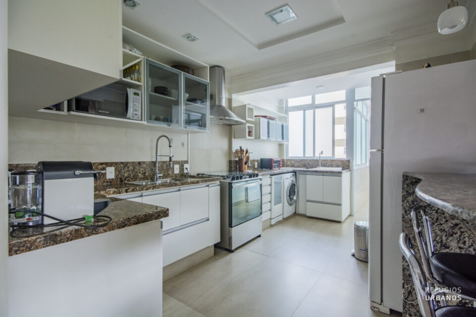 Cozinha clean e lavanderia discreta