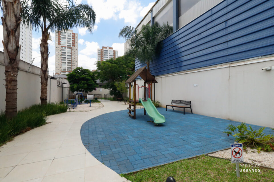 Aqui a infraestrutura é completa para o dia a dia: salão de festa, churrasqueira, espaço pet, playground, lavanderia, academia e piscina. A portaria é presencial 24h e a garagem conta com duas vagas e bicicletário.