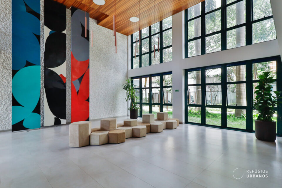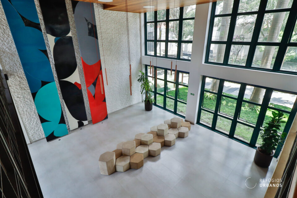 Trazendo modernidade sem apagar sua história, o projeto preservou a fachada original e manteve os lindos painéis de Fernando Lemos, que seguem embelezando o hall de entrada.