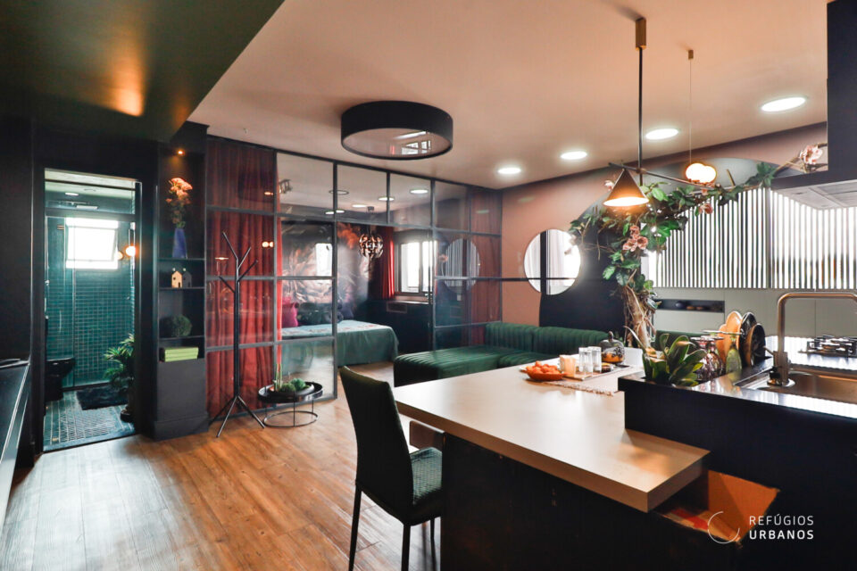 Com 67m², originalmente com dois dormitórios e dois banheiros, o apartamento passou por uma releitura inteligente. Assim, ganhou ambientes integrados, mais fluidez e um dormitório amplo — ideal para quem gosta de receber e viver bem.