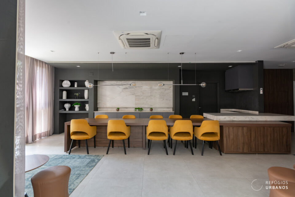 A sala é generosa e permite integração total com a varanda e a cozinha, criando um ambiente único, amplo e arejado. Um lavabo atende perfeitamente a área social, trazendo conforto para o dia a dia e para receber visitas.