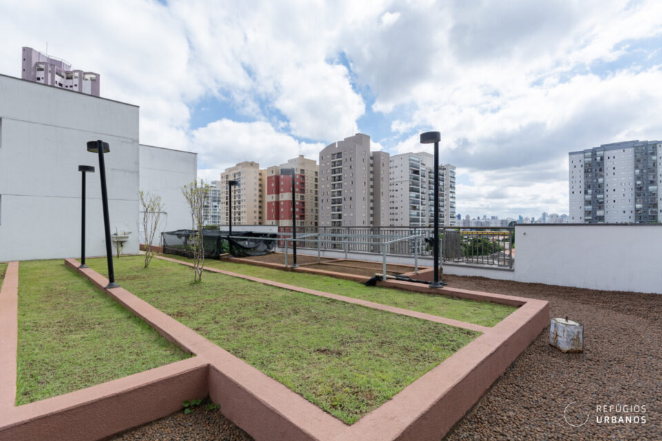 Sobre o condomínio, a entrega ocorreu entre 2020 e 2021. Atualmente, o perfil é moderno e a estrutura é enxuta. No total, são 4 andares e 36 apartamentos. O prédio conta com elevador e dois pavimentos de garagem; além disso, possui acessibilidade na entrada. Na cobertura, por fim, há salão de festas e horta compartilhada.