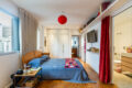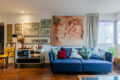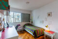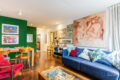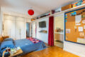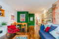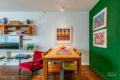 Assim que entramos, a sala de estar nos recebe com todo seu charme, suas cores vibrantes e a extensa janela. Este ambiente é arejado e bem luminoso, perfeito para momentos de convivência.