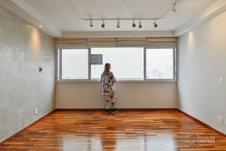 À primeira vista, a amplitude da sala desse apartamento na Pompeia já encanta. Em andar alto, está envolto por uma atmosfera luminosa e acolhedora.