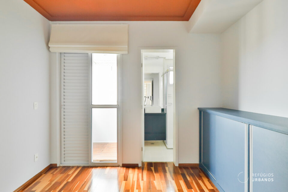A suíte possui uma varanda, também banhada pelo sol da manhã.