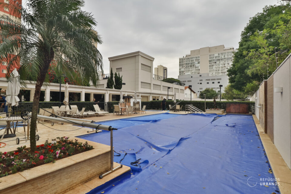 A área de lazer é super completa, com piscina, academia, espaço gourmet, quadra poliesportiva e salão de jogos.