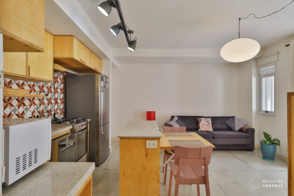 Este apartamento de 64m² na Bela Vista recebeu uma reforma assinada pela arquiteta francesa Camille Bianchi e, portanto, combina estética sensível e soluções funcionais.