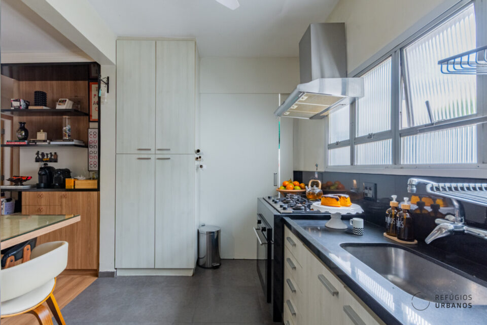 A sala integrada à cozinha cria um espaço descontraído e ideal para receber. A cozinha já vem equipada com cooktop, forno e coifa, além de bons armários. Tudo organizado, funcional, pronto para uso.