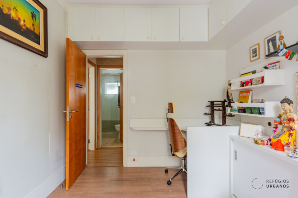 Na parte íntima, o apartamento oferece dois quartos com ótimos tamanhos, ambos com marcenaria embutida. A suíte, espaçosa e bem resolvida é o grande destaque, é o lugar perfeito para começar e terminar o dia com tranquilidade.
