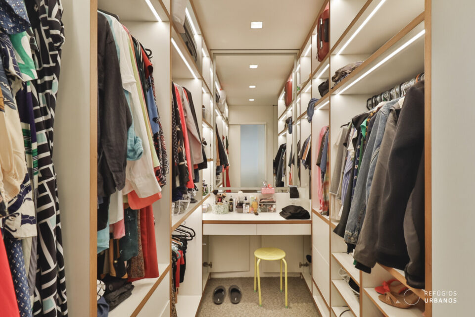 Os três dormitórios são amplos, com marcenaria sob medida que valoriza o espaço e a funcionalidade. A suíte principal tem um walk-in closet dos sonhos.
