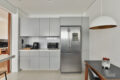Porém, se você prefere cozinha fechada, não tem problema! Os ambientes podem ser divididos por uma linda porta de correr.