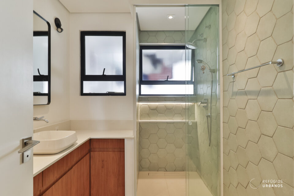 A sala conta com duas janelas generosas, que garantem então a abundância de luz natural e deixam o sol da manhã, além proporcionar ventilação cruzada, deixando o ambiente fresquinho.